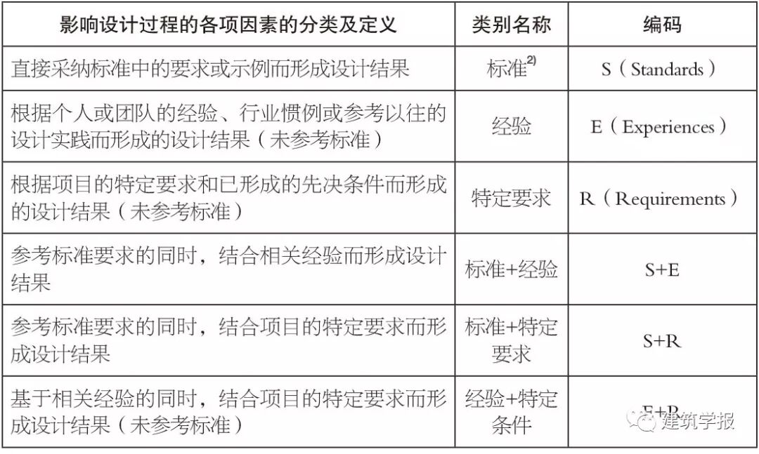 在40项使用了标准的设计要素中,有27项为“S”,即直接采纳标准要求,未再受到其他因素影响;8项为“S+R”,5项为“S+E”,说明这13项要素在参考标准的同时,还受到了经验(E)或项目特定要求(R)的综合影响。