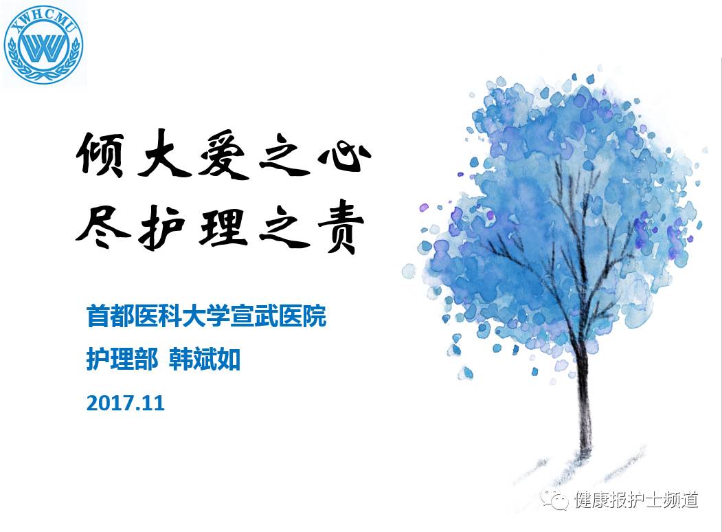 【深化优质护理典型经验交流•辽宁站(一)】宣武医院:倾大爱之心,尽护理之责点击“健康报护士频道”关注 11月20日,2017深化优质护理典型经验推进会▪辽宁站在沈阳市召开。此次会议由国家卫生计生委医政医管局指导,《健康报》社主办,中国医科大学附属盛京医院协办。会上,来自各级医院的护理部代表通过主题演讲,分享了各自在开展优质护理服务中的探索和经验。 今天推出的典型经验来自首都医科大学附属宣武医院,由该院护理部主任韩斌如分享。 关键词:安全管理;多学科查房;护理门诊;示范辐射作用