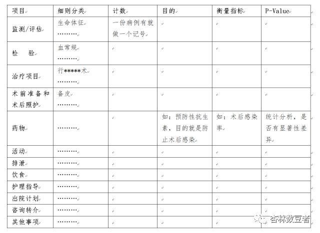 讲座笔记:医疗质量管理——临床路径这篇是根据马作镪博士的讲座内容,查询相关文献、整理省肿瘤医院团队现场制作的案例及我们一些观点综合而成,分享给大家,希望对大家有所帮助。 医疗质量管理是医院的核心任务。在国家推行“询证医学”理念并且建立了各种病种的临床诊疗规范指南之后,如何让患者在医院的诊疗过程更规范合理一直是医改的重要内容之一,2009年国家卫生与计划生育委员会国家卫计委推行临床路径管理无疑是进一步提高诊疗规范性的有力工具。 一、什么是临床路径? 临床路径对于临床诊疗,就像‘食谱’之于做菜一样,是一个具有科学性和时间顺序性的标准‘流程图’。它是指针对某一单病种的诊断、治疗、康复和护理所制定的一个诊疗标准化模式,是一个有严格工作顺序、准确时间要求的规范化的医疗护理照顾计划。 二、临床路径的起源 20世纪80年代后期,美国政府为了遏制医疗费用不合理增长,提高卫生资源利用率,医疗保险支付由传统的后付制改为按疾病诊断相关组支付(DRGs)。医院出于自身效益考虑,将临床路径应用于护理管理,作为缩短住院日的手段。1985年美国新英格兰医疗中心(New England Medical Center)率先实施临床路径,并证实成功降低了高涨的医疗费用。临床路径由此受到美国医学界的重视并不断发展,逐渐成为既能贯彻医院质量管理标准,又能节约资源的医疗标准化模式。 三、临床路径的作用 1.发展一套最适当、最具成本效益的治疗模式 2.医疗质量的维持与改善 3.减少医疗照护上不必要的差异 4.促进医疗团队内成员的合作无间 5.强调持续性医疗照护 6.医疗成本的控制 7.医疗纠纷的预防 8.病患满意度的提升 四、临床路径的建立步骤 1 步骤一: 选择病种。什么样的病种需要建立临床路径呢?可以参照一下原则: (一)列为论病种计酬制之医疗项目 (二)变异较少之医疗项目 2 步骤二: 成立临床路径小组。小组人员应包括可能涉及的相关专业专家,如:医师、护理人员、检验、影像、营养、临床路径管理员、相关行政人员、其他。 3 步骤三: 病例回顾。目的是通过选定病种的既往病历分析出医疗过程中关键医疗措施,。可以从监测/评估、检查检验、用药、治疗、术前/术后照护等方面分析,每项医疗措施回顾内容应包括医疗措施的项目归类(如:监测/评估、检查检验、用药、治疗、术前/术后照护)、名称细则分类、回顾病历中应用次数计数、医疗措施应用目的、评价医疗措施效果衡量指标、应用与不应用该医疗措施相比衡量指标的统计学差异(P-Value)(详见例表)。 病例回顾表 4 步骤四: 依据步骤三病历资料回顾分析结果,将应用次数多的及应用结果评价有差异的医疗措施筛选出来作为关键医疗措施,按照时间顺序列出基本医疗流程。 5 步骤五: 团队做文献回顾。临床路径小组内专业成员查阅相关国家政策规定及专业指南等明确列出的基本医疗流程的合理性及有无遗漏。 6 步骤六: 依照病例回顾和文献,订出基本临床路径草案,并送院科会讨论。
